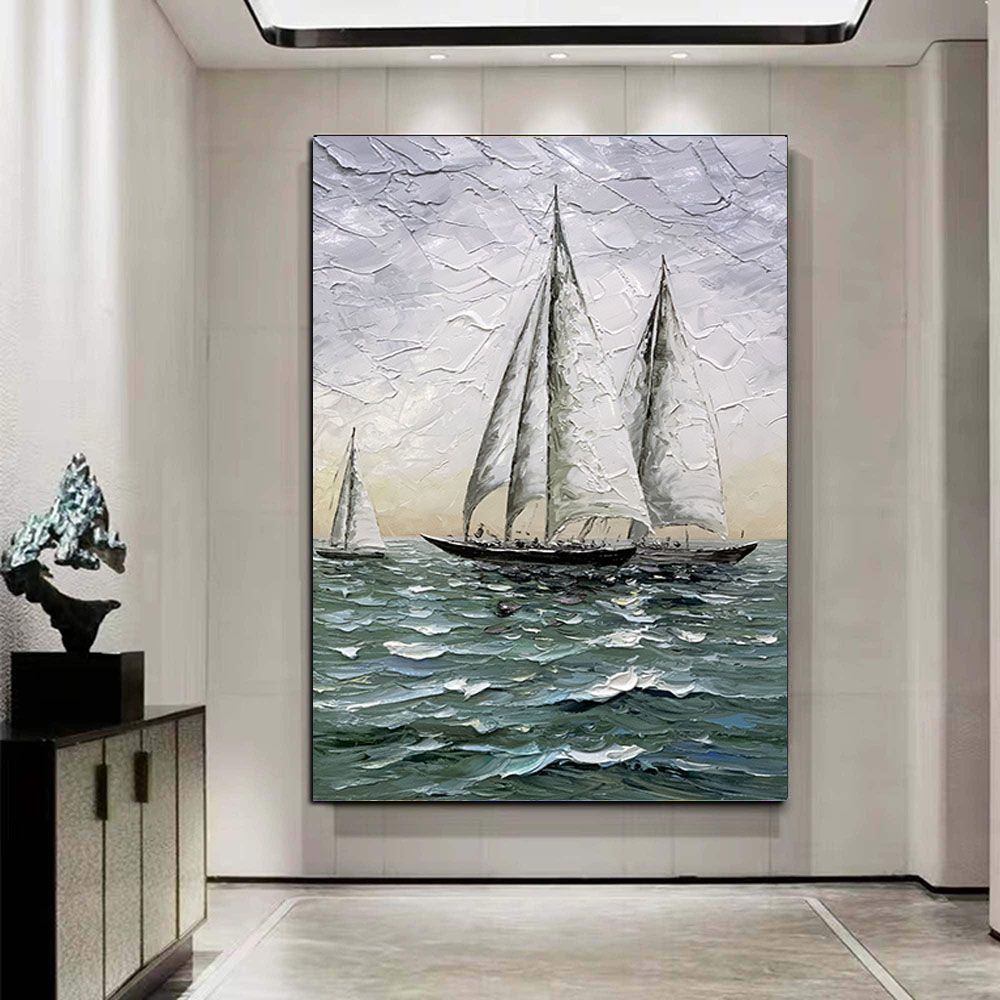 Home > Hand Painted Impressionism Sunrise Seascape Abstract Oil Painting Canvas Art Poster Picture Wall House Decoration Mural