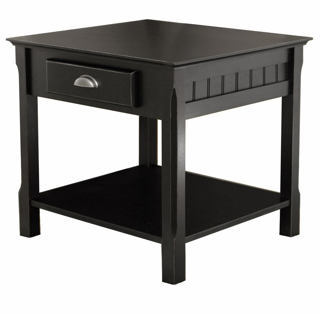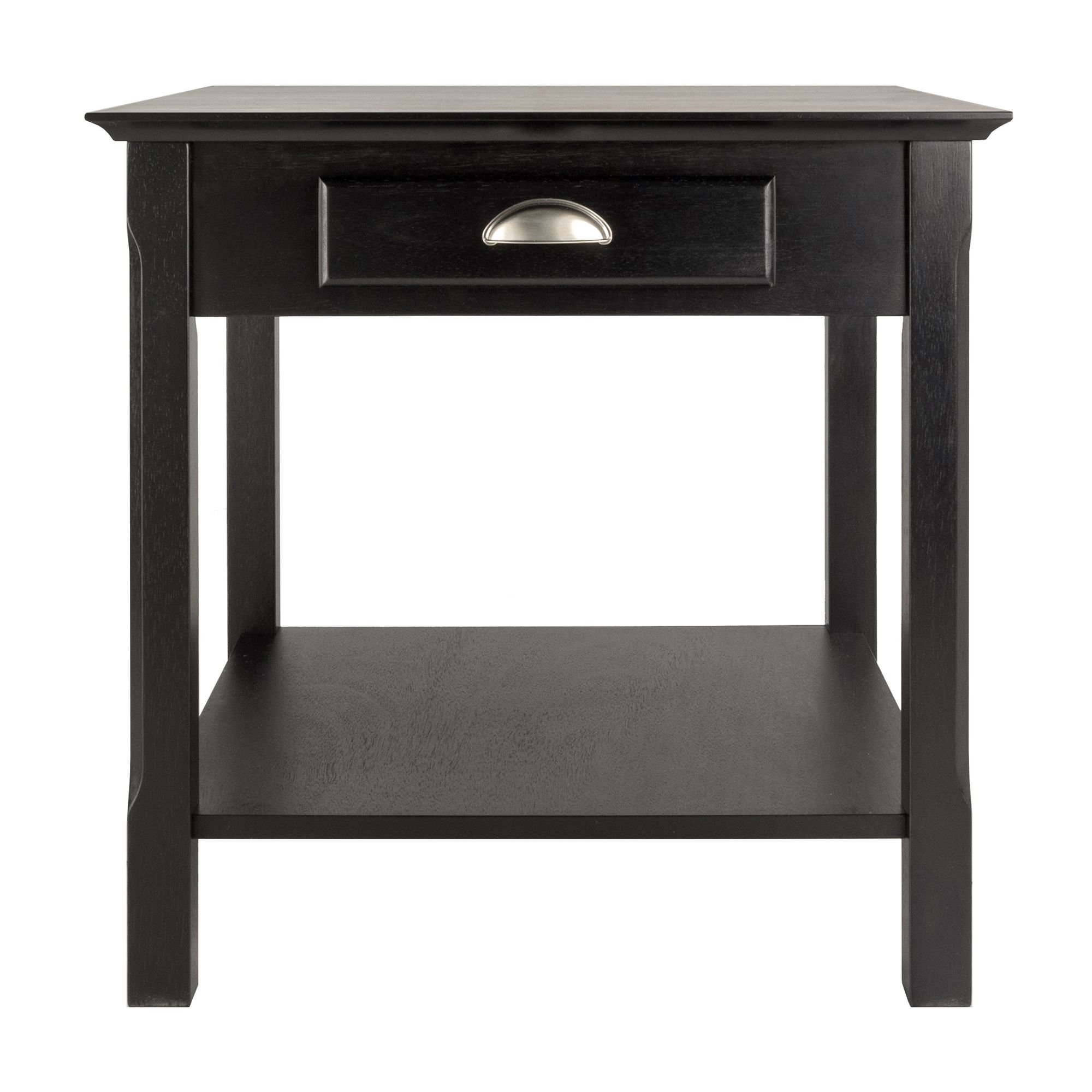 The Timber Night Stand or Accent Table offers a subtle touch to dress up or dress down any living room. It is uniquely casual yet sophisticated and incredibly affordable for solid wood furniture. It comes with one drawer with a half moon handle and an open shelf. Match with Console Table (20450) and Coffee Table( 20238) collection. Table top is 22"W x 22"D. Inside drawer dimensions is 9.2"W x 13.3"D x 2"H. Shelf space dimension is 12.3"H x 17.2"W x 17.2"D. Clearance from the floor to bottom of shelf is 4". Shelf dimension is 19.5" x 19.5". Assembly required.Table assembled size is 22""W x 22"D x 22"H. Combination of solid/composite wood in blackInsider drawer dimension is 9.2"W x 13.3"D x 2"H with metal door pull; Assembly requiredBottom shelf surface is 19.5"W x 19.5". Clearance of 12.4" from bottom of drawer to shelf.nullnullnull